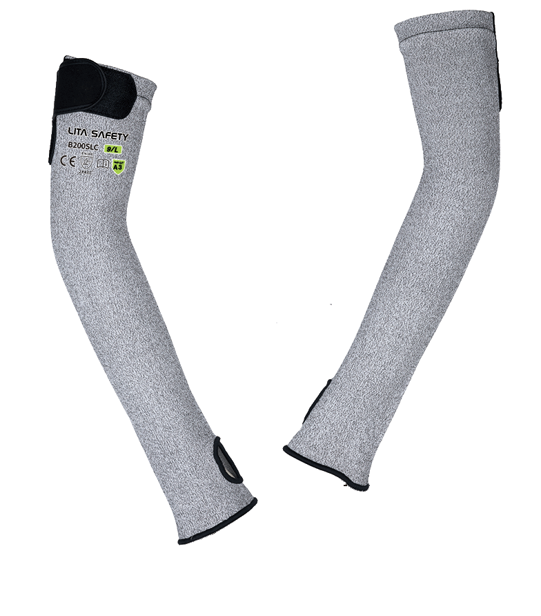 Las mangas resistentes de corte B200SLC ofrecen protección confiable del antebrazo contra cortes y abrasiones en entornos industriales. Construido a partir de una manga gris tejida de fibra de calibre 13 y fibra de vidrio, estas mangas proporcionan una cobertura cómoda y transpirable con una fuerte resistencia de corte, lo que las hace ideales para tareas que involucran materiales afilados.