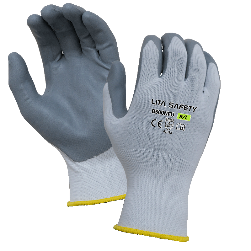 Los guantes de trabajo recubiertos de espuma de nitrilo B500NFU están diseñados para tareas que requieren precisión, comodidad y agarre confiable en entornos de trabajo limpios o controlados. El revestimiento de nylon blanco de calibre 15 mantiene las manos cómodas y ayuda a mantener la limpieza, mientras que el recubrimiento de palma de nitrilo de micro espuma gris proporciona un excelente agarre, resistencia a la abrasión ligera y destreza. Estos guantes son ideales para el ensamblaje electrónica, la inspección y el manejo general donde la limpieza de la superficie es importante.